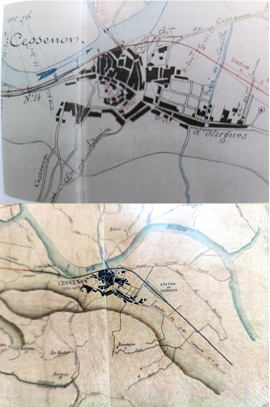 Les plans montrent qu’à cette date Cessenon ne s’est pas encore beaucoup étendu en dehors des remparts. Si des maisons ont été construites le long de la route de Béziers le quartier de la gare est encore utilisé pour les cultures.